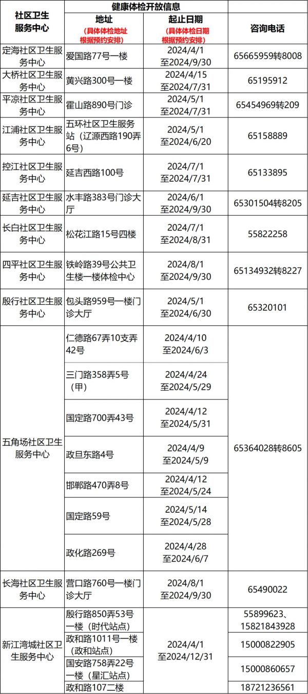 楊浦區(qū)社區(qū)衛(wèi)生服務(wù)機(jī)構(gòu)老年人健康體檢預(yù)約信息全覽