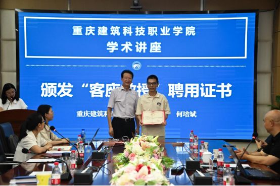 何培斌副校長為倪良位高級工程師頒發(fā)“客座教授”聘書