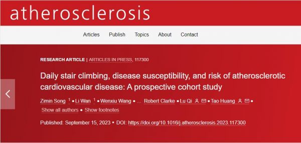 ①Daily stair climbing, disease susceptibility, and risk of atherosclerotic cardiovascular disease: A prospective cohort study,Atherosclerosis,Sep.2023, https://doi.org/10.1016/j.atherosclerosis.2023.117300