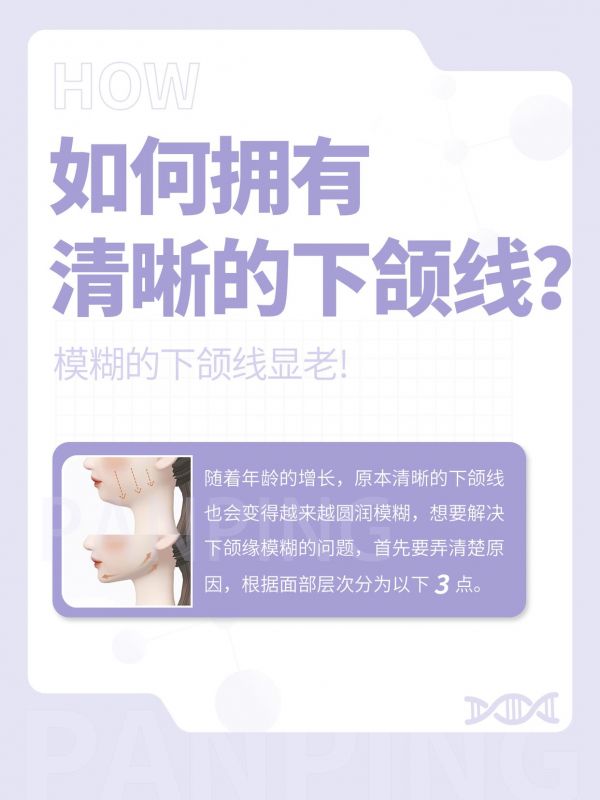 隨著年齡的增長,原本清晰的下頜線也會變得越來越圓潤模糊,想要解決下頜緣模糊的問題,首先要弄清楚原因,根據(jù)面部層次分為以下 3 點。