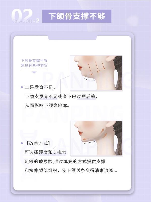 下頜支發(fā)育不足或者下巴過短后縮,從而影響下頜緣輪廓。