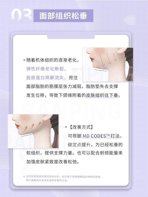 會讓面部產(chǎn)生向下收縮的力量,進而導致下頜緣模糊。