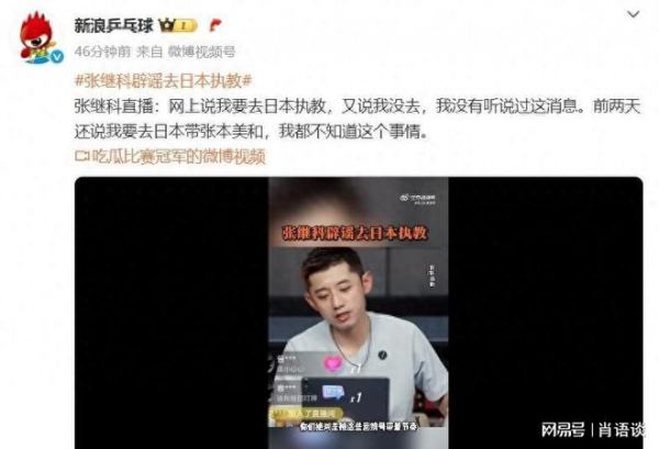 要去日本執(zhí)教張本美和?張繼科本人親自回應(yīng)
