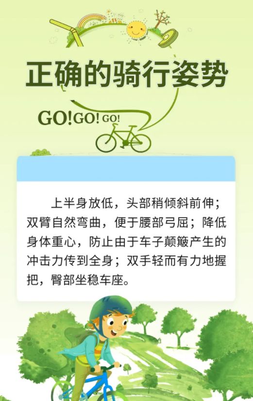 因此,騎行者要注意保持正確的騎車姿勢(shì)。當(dāng)騎車時(shí)間較長(zhǎng)時(shí),要注意變換騎車姿勢(shì),並適當(dāng)休息。