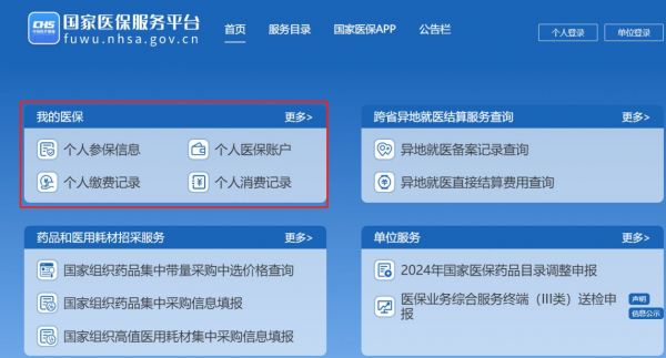 個人注冊登錄“國家醫(yī)保服務(wù)平臺”網(wǎng)站,在【我的醫(yī)?!堪鎵K可查詢個人參保信息、個人醫(yī)保賬戶、個人繳費記錄、個人消費記錄。