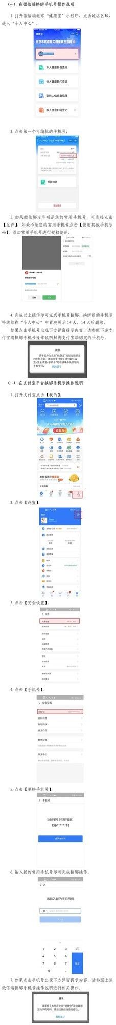 北京健康寶手機(jī)號(hào)怎么換綁(微信+支付寶)