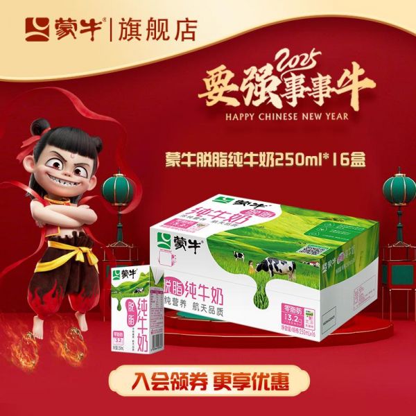 蒙牛脫脂奶“控脂不控營養(yǎng)”!250ml*16盒家庭裝