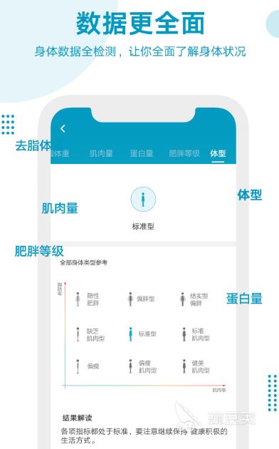 可直接連接體脂秤與手環(huán)的應(yīng)用,輔助小伙伴們完成身材管理,具有科學(xué)分析數(shù)據(jù)模式管理體重的同時(shí),關(guān)愛(ài)你的身體健康。18項(xiàng)數(shù)據(jù)全面推送,包含體重身體固定數(shù)據(jù),可直接計(jì)算出具體的體脂率,水分,基礎(chǔ)代謝率等等,幫助你有效管理身材。提供多渠道數(shù)據(jù)分享,與好朋友共同分享你的健康模式。