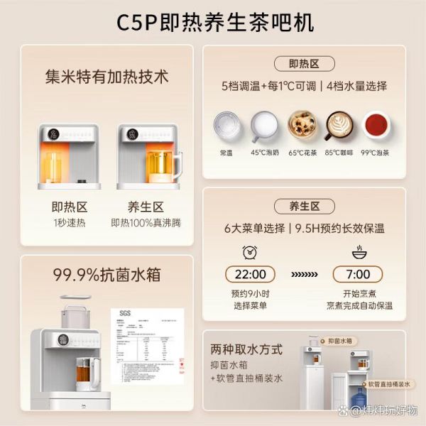 ? 2秒即熱,快速沸騰:這集米C5PLUS飲水機,真的是快到飛起!你想想,2秒就能從常溫加熱到沸騰,比普通飲水機快了不止一倍!燒水煮茶,瞬間搞定,再也不用等半天了。這速度,簡直就像你喝咖啡一樣,一鍵搞定,生活效率直接up up!