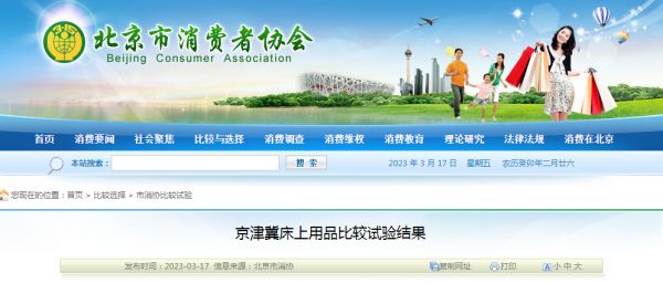 北京市消費者協(xié)會床上用品比較試驗不符合標準樣品