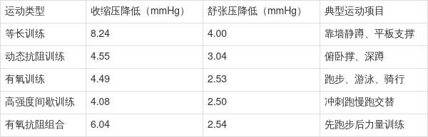 不同類型的運(yùn)動(dòng),降壓效果也不一樣。下面用表格列出來,這樣更直觀: