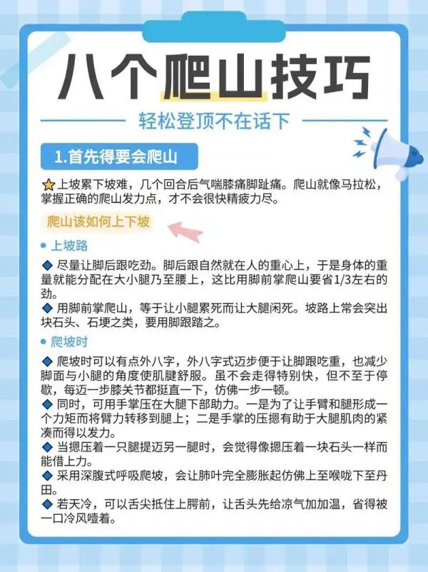 ? 注意環(huán)境安全:選擇安全、熟悉的路線進行爬山登梯,避免在惡劣天氣(如暴雨、雷電、大風(fēng)等)下運動。在山路上行走時,要注意腳下,防止滑倒和墜落。