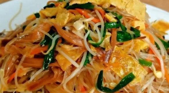 黃花菜炒粉絲是一道健康美味的素菜,清爽可口,適合夏季食用。首先將干黃花菜用熱水泡發(fā),粉絲用溫水泡發(fā),打入雞蛋制成雞蛋餅,并將其切成條狀,備用。胡蘿卜、韭菜和豆芽是這道菜的主要配菜,切成細絲備用。黃花菜焯水后瀝干,熱鍋加油,炒香蔥姜蒜并加入胡蘿卜絲和豆芽翻炒均勻。接著加入黃花菜,炒出香味后加入粉絲,翻炒均勻后調入調味品,最后加入雞蛋條進行炒勻。這道菜色香味俱佳,黃花菜的爽脆和粉絲的口感細膩相得益彰,令人胃口大開。