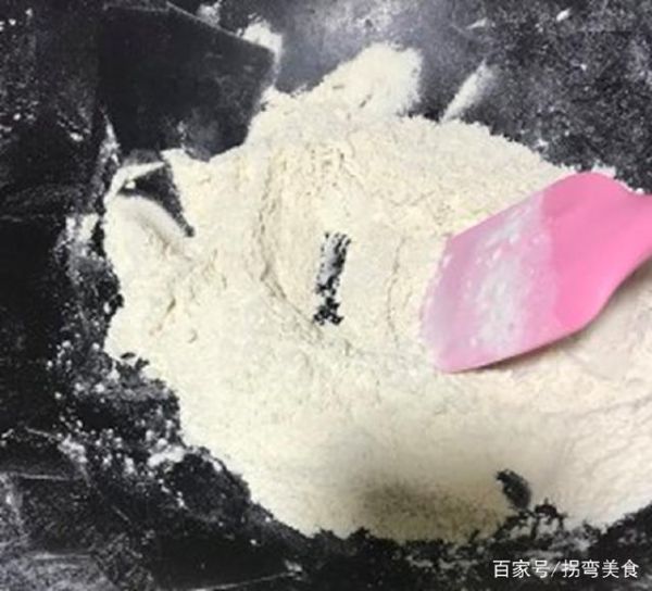 3.生面粉放入鍋中,不加油,微火不停地炒,這一步要不停翻炒,人不要離開動(dòng)作輕柔一點(diǎn),不要將面粉炒出鍋。