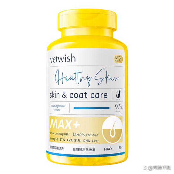 1、高純度Omega-3:這款VETWISH深海魚油Ω3的Omega-3含量高達(dá)97%,其中EPA含量為51%,DHA含量為41%。這種高純度的Omega-3能夠有效改善貓咪的毛發(fā)健康,讓毛發(fā)更加柔順亮澤。