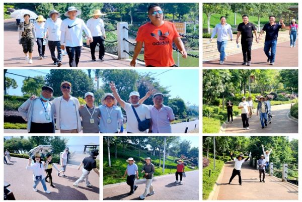 細(xì)風(fēng)娓娓,樹(shù)木蔥郁,透藍(lán)的天空映襯著湖面的粼粼波光,讓路旁繽紛的花朵更加絢麗,一切都昭示著美好和生機(jī)勃勃。大家暫停了忙碌的工作,在寧?kù)o而舒適的環(huán)境中放緩腳步,感受著自然陽(yáng)光,盡情放松自己,享受著這份屬于夏日的美好。在行進(jìn)過(guò)程中,大家或談?wù)撝鞘械淖兓?,或敘說(shuō)著生活的近況,或相互鼓勵(lì)加油,臉上洋溢著的笑容,融合著輕松活躍的氛圍,壓力得到了釋放。