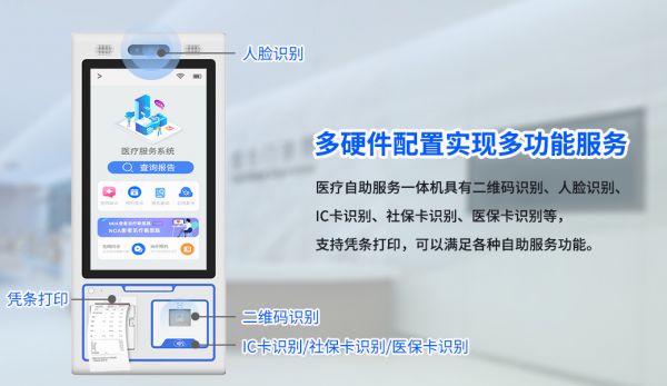 醫(yī)療自助服務一體機具有二維碼識別、人臉識別、IC卡識別、社??ㄗR別、醫(yī)??ㄗR別等,支持憑條打印,可以滿足各種自助服務功能。