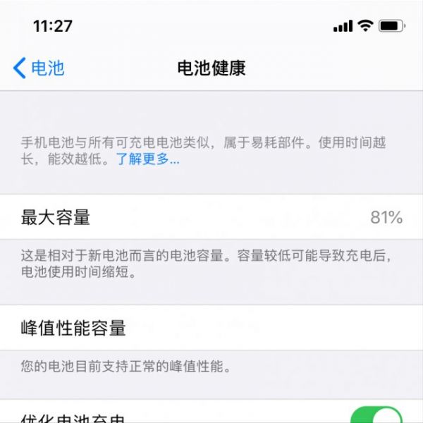 我們可以看到,此時(shí)的電池健康為81%,而當(dāng)電池健康低于80%,電池將掉電嚴(yán)重,并且會(huì)出現(xiàn)卡頓,影響正常的學(xué)習(xí)生活。