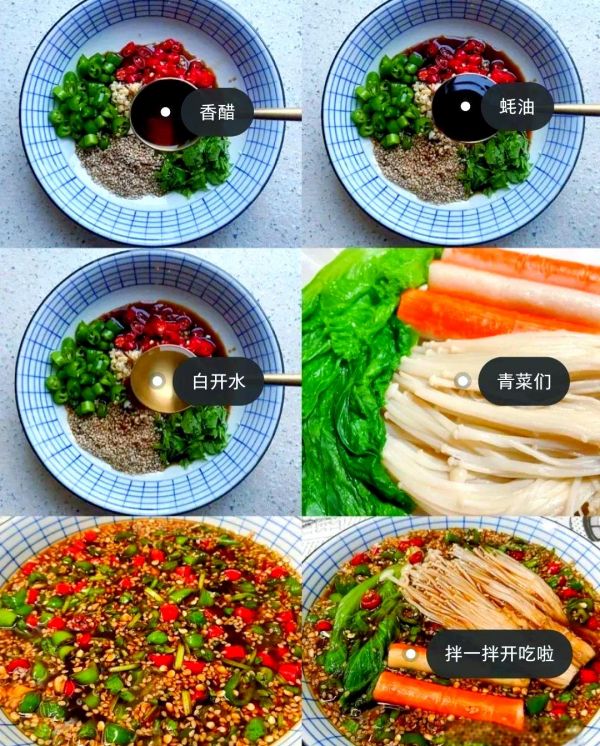 現(xiàn)在,就讓我們一起動(dòng)手制作這款神奇的蘸料吧!首先,準(zhǔn)備好蒜末、小米辣、線椒、香菜、芝麻。接著,加入生抽、香醋、蠔油,再根據(jù)自己的口味選擇想吃的青菜。最后,攪拌均勻,一款健康美味的萬(wàn)能蘸料就做好了!通過(guò)簡(jiǎn)單的食材和步驟,可以輕松制作出健康美味的萬(wàn)能蘸料,享受制作的樂(lè)趣和美味的成果。