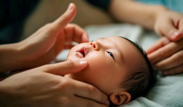 - 雙手拇指從寶寶眉心向太陽穴輕推(緩解皺眉緊張)。
