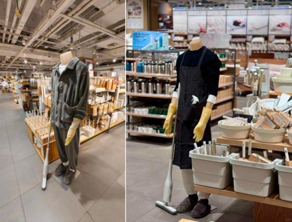 比如無印良品,也是因假人模特出圈被網(wǎng)友點贊。2024年11月,無印良品在門店內(nèi)設(shè)置男模特身著圍裙、手持拖把和手套的“暖男套裝”造型,通過無聲的陳列傳遞“男性做家務(wù)同樣有范兒”的信息,打破了“家務(wù)是女性專屬”的傳統(tǒng)觀念,引發(fā)女性消費(fèi)者的共鳴,被視為“好男人營銷”的典型代表。