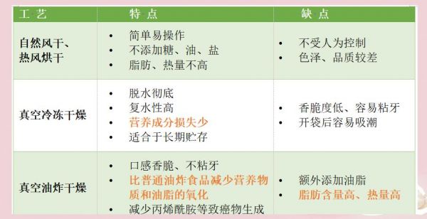 自然風(fēng)干與熱風(fēng)烘干,這兩種古老的制作方法,雖然受限于自然條件,導(dǎo)致產(chǎn)品色差明顯、干燥程度不均,但它們?yōu)楣吒墒袌鎏峁┝嘶A(chǔ)。隨著市場需求的變化,為了確保銷售量和產(chǎn)品色澤、品質(zhì)的統(tǒng)一,真空冷凍干燥和真空油炸干燥這兩種更為先進(jìn)的工藝逐漸成為市場主流。