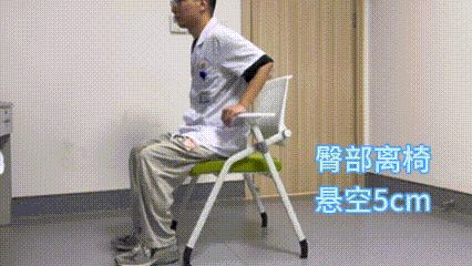 1.雙手扶桌沿→臀部離椅懸空5cm;