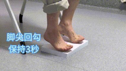 1.坐姿雙足跟懸空,腳尖最大限度回勾(如抵抗皮筋拉力),并保持3秒;