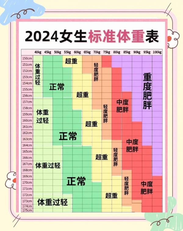 2024年女生標(biāo)準(zhǔn)體重表,快來對(duì)照