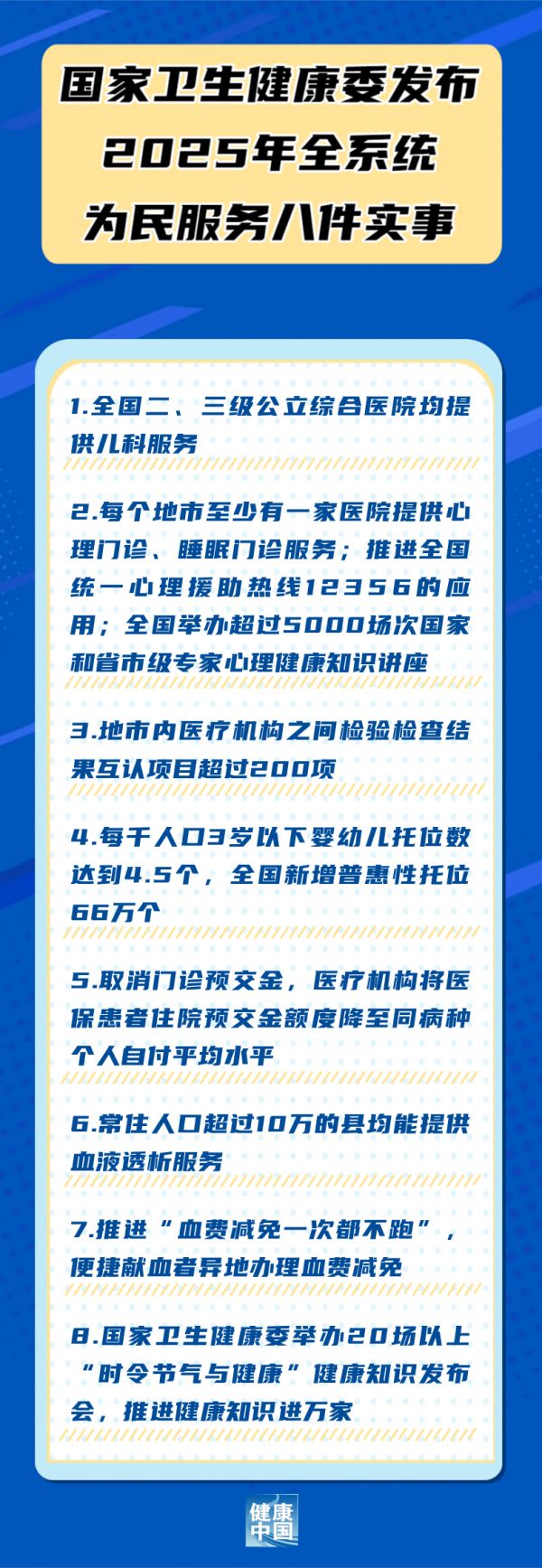 國(guó)家衛(wèi)健委公布2025為民服務(wù)八件實(shí)事