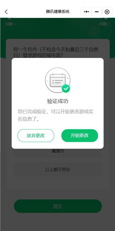 出現(xiàn)該頁(yè)面證明 驗(yàn)證成功 ,點(diǎn)擊 開(kāi)始更改 即可更改實(shí)名認(rèn)證信息