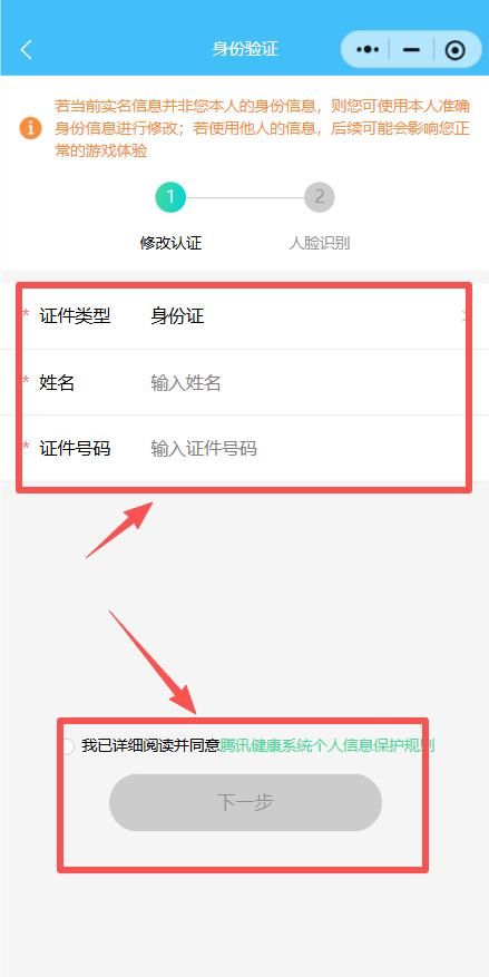 隨后輸入需要修改的身份認(rèn)證信息,點(diǎn)擊 下一步 ,隨后 人臉識(shí)別 ,如果驗(yàn)證通過(guò),那么順利的 更換了身份認(rèn)證信息 。