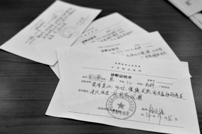 這幾張?jiān)\斷證明書都被證實(shí)系偽造。京華時(shí)報(bào)記者趙思衡攝