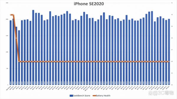 iOS18.2.1版本的iPhoneSE2020電池得分為1968分,iOS18.3版本的電池得分為2003分,電池得分增加同時電池健康度沒有變化,建議升級。