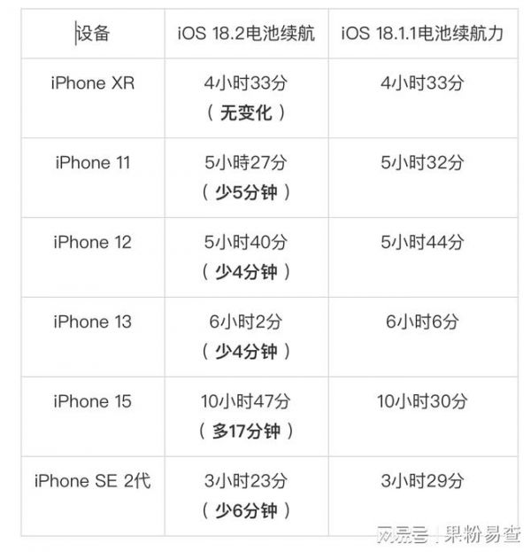 各款 iPhone 機型升級 iOS 18.2 電池續(xù)航表現(xiàn)