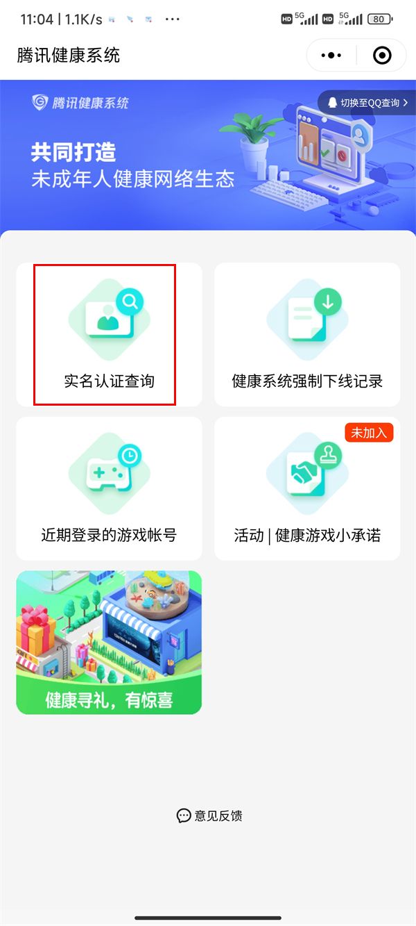 2、在健康系統(tǒng)頁(yè)面點(diǎn)擊實(shí)名認(rèn)證查詢。