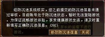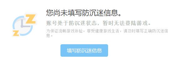 若賬號防沉迷信息不全或信息有誤,登陸時將收到彈窗提示,點擊提示中【修改防沉迷信息】按鈕,即可跳轉(zhuǎn)到“賬號管理中心-防沉迷專區(qū)”。(也可點擊此處前往賬號管理中心-防沉迷專區(qū))