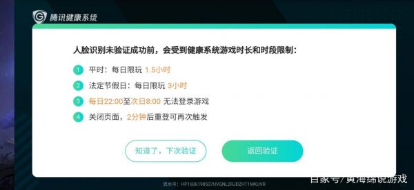 今天登陸了王者,發(fā)現(xiàn)竟然要人臉識別驗證,本來想下次再驗證,后來發(fā)現(xiàn)不驗證會把我當(dāng)成小學(xué)生對待。每日限玩1.5小時22:00至次日8:00無法登錄游戲。