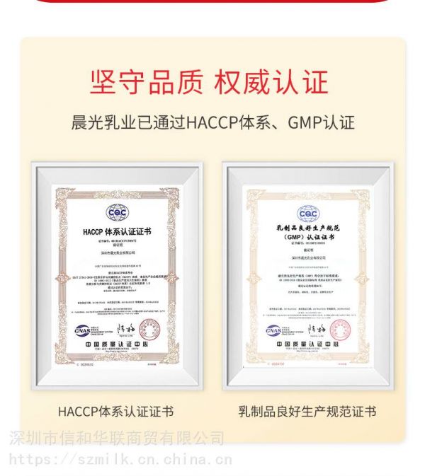 深圳市信和華聯(lián)商貿(mào)有限公司位于深圳市南山區(qū)南海大道以西美年國際廣場1棟603-38,成立于2013年7月。主要致力于為深圳市各單位機(jī)關(guān)、食堂、工會(huì)、酒樓、酒店、便利店、商場、超市提供優(yōu)質(zhì)乳制品及免費(fèi)配送服務(wù)。主要經(jīng)營的品牌有:晨光、卡士、蒙牛、伊利、光明、暢優(yōu)、維記、香滿樓等。品種有:晨光鮮牛奶、晨光酸牛奶、晨光木瓜奶、晨光都市牧人、晨光特選***、卡干活均奶、卡干果粒鮮酪乳(原味、草莓、藍(lán)莓、黃桃)、卡士優(yōu)酪乳, 深圳蒙牛優(yōu)益C批發(fā),晨光鮮牛奶批發(fā)、卡士活均奶批發(fā)、卡士鮮酪乳批發(fā),卡士佐餐奶批發(fā)、光明鮮牛奶、光明暢優(yōu)酸奶、香滿樓鮮牛奶等各***牛奶批發(fā)及零售。歡迎來電咨詢。 經(jīng)銷批發(fā)的晨光牛奶卡士牛奶酸奶***消費(fèi)者市場,在消費(fèi)者當(dāng)中享有較高的地位,公司與多家零售商和代理商建立了長期穩(wěn)定的合作關(guān)系。深圳市晨光卡士牛奶批發(fā)團(tuán)購中心經(jīng)銷的晨光牛奶卡士牛奶酸奶品種齊全、價(jià)格合理。深圳市晨光卡士牛奶批發(fā)團(tuán)購中心實(shí)力雄厚,重信用、守合同、***產(chǎn)品質(zhì)量,以多品種經(jīng)營特色和薄利多銷的原則,贏得了廣大客戶的信任。