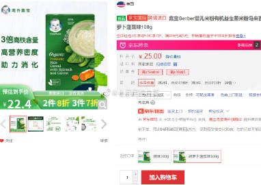 嘉寶Gerber嬰兒米粉 胡蘿卜菠菜味100g,再疊加評論里150-46券,買6件54包郵