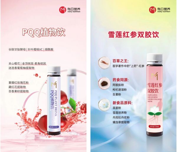 圍繞當代人的健康痛點和養(yǎng)生訴求,南京每日營養(yǎng)依托優(yōu)勢供應商資源,以循證營養(yǎng)學為理論基礎,充分挖掘中國傳統(tǒng)的藥食同源成分的同時,創(chuàng)新性結(jié)合當下市場熱點的植萃成分,如酸棗仁、茶葉茶氨酸、針葉櫻桃、關(guān)山櫻花、重瓣玫瑰、枸杞、紅參等,推出多種植萃飲系列,以滿足不同類型消費群體的多樣化、多場景健康需求。