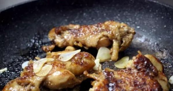 不粘鍋里放油,燒熱后放入腌制好后的雞腿肉煎熟,先把皮朝下煎會更香。中火加蓋3-4分鐘后翻面,煎到兩面焦黃即可。由于腌制的調料里鹽味已經(jīng)足夠,所以不用加額外調味料了,在出鍋前大約1分鐘放一些蒜片再淋一勺威士忌之類的高度洋酒,味道會更好,吃的時候可以在面包上抹一些黃芥末或者是拉差辣椒醬,都很不錯,煎好再放一些黑椒醬,它就是一道菜了!