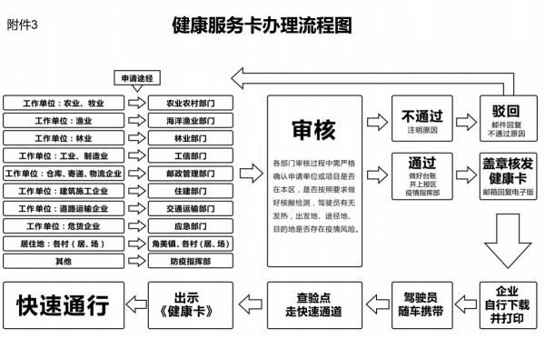 機關(guān)企事業(yè)單位工作人員,由行業(yè)主管部門負責辦理車輛健康服務(wù)卡;個人申請的由角美鎮(zhèn)、各村(居、場)負責辦理。所有健康服務(wù)卡經(jīng)行業(yè)主管部門、角美鎮(zhèn)把關(guān)后統(tǒng)一匯總到區(qū)疫情防控指揮部蓋章確認后,方可生效。