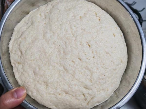 經(jīng)過發(fā)酵,面團體積會顯著增大,大約是原先的2至2.5倍,具備良好的彈性和韌性。當(dāng)你輕輕從臺面上掂起面團時,它能夠輕松且完整地離開臺面,這表明面團已經(jīng)揉好了。此時的面團既不會輕易粘手,也不會黏住臺面。