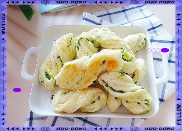 材料:面粉300克,酵母3克,小蘇打2克,蔥花、油、鹽適量。