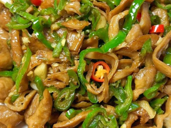 食材清單:青椒 2 個、熟肥腸 200 克、大蔥 1 段、生姜 1 塊、大蒜 3 瓣、鹽適量、生抽 2 勺、老抽 1 勺、料酒 1 勺、淀粉適量、食用油適量、蔥花適量。