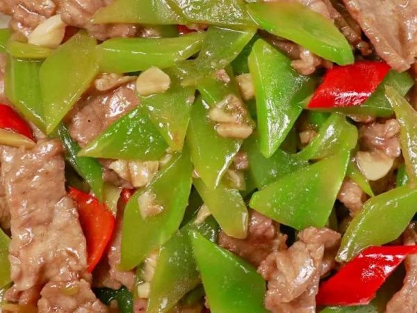 炒青椒:放入青椒塊,繼續(xù)翻炒,炒至青椒稍微變軟,出汁。在炒制過程中,青椒會吸收肥腸和調(diào)料的香味。