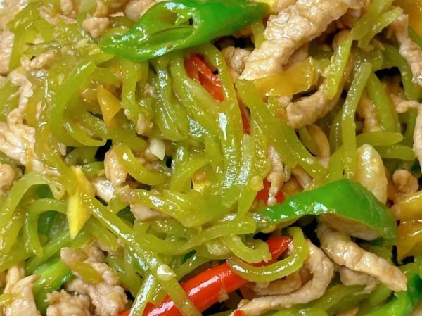 炒制肉絲:熱鍋涼油,放入腌制好的肉絲,小火滑炒。在炒制過程中,肉絲會逐漸變色,待肉絲變色熟透后,盛出備用?;慈饨z時要注意火候,確保肉絲嫩滑。