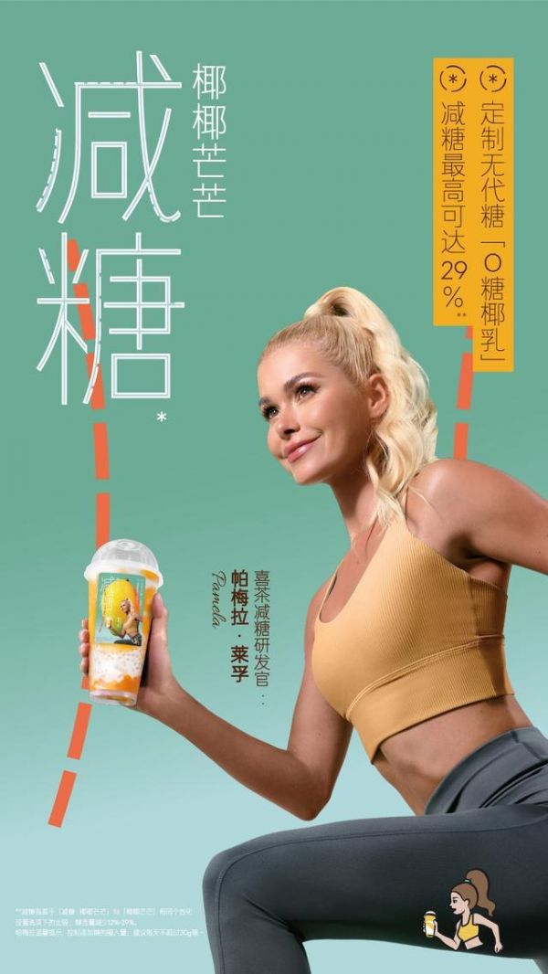 喜茶,2021年注冊在上海徐匯,一直是新式茶飲的引領(lǐng)者。喜茶與全球頂流健身博主帕梅拉·萊孚進(jìn)一步合作,推出新品“減糖·椰椰芒芒”。這一創(chuàng)新嘗試可比常規(guī)版“椰椰芒芒”最高減少29%的糖含量,單杯熱量僅約160大卡,還不足一個(gè)梨。