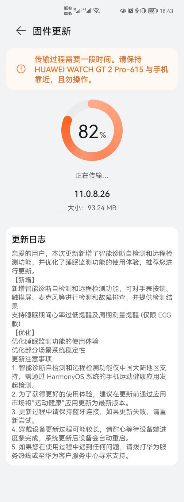 華為WATCH GT 2 Pro ECG版推送11.0.8.26更新